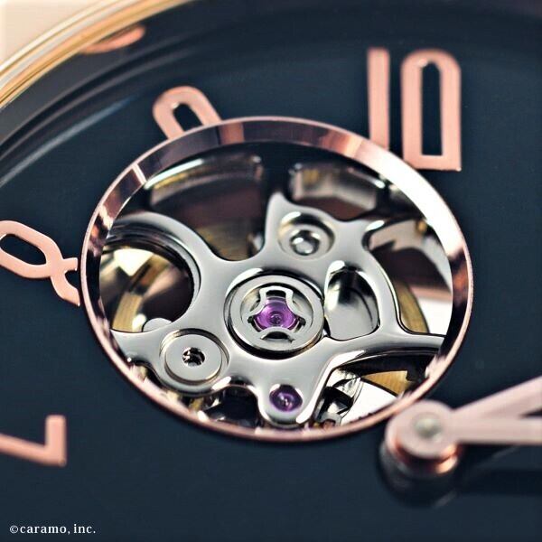 【残り1本】 国産てんぷスケルトン機械式ムーブメント×木曽漆の匠 荻上 文峰氏の卓越した技が融合した 機械式腕時計 「SPQR urushi-kiso 機械式 ピンクゴールド」バックルシルバー×クロコダイルバンド