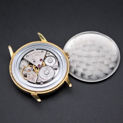 【SEIKO 1950年代 ヴィンテージ】 SEIKO UNIQUE (セイコー ユニーク Sマーク) 手巻三針機械式 20ミクロン金張ケース・ゴールド12箇所棒略字文字盤・オーバーホール済 ブラウン・クロコダイル