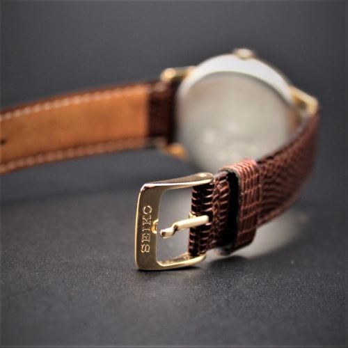 ◆商品名:SEIKO UNIQUE(セイコー ユニーク Sマーク) ◆商品コード:VISe ◆ケース:胴 EGP 20ミクロン金張 SS裏蓋 ◆機能:手巻/機械式 ◆文字盤:白・12箇所棒略字 DIASHOCK 17JEWELS ◆ケース外径:φ34mm ◆ケース厚み:9mm ◆バンド:ブラウン・クロコダイル×ゴールドバックル(SEIKO刻印) ◆特記事項:OH済、ケースには経年変化があるが大きなキズなし外観良好 文字盤風合いあり
